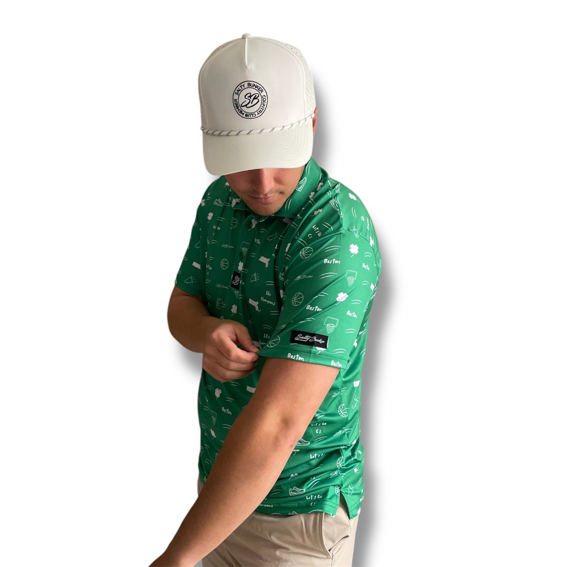 Crafted with 4-way stretch, breathable fabric, this polo is built for comfort and performance, whether you're draining birdie putts or cheering on Banner 19. Plus, it's easy to wash and designed to last, with our premium sewn-on Salty Bunker labels for that signature touch.